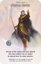 Gegner können keine Energiekarten mehr in diesen Konflikt spielen, deren Farbe du schon in diesen Konflikt gespielt hast.