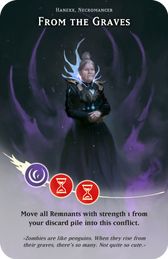 Move all Remnants with strength 1 from your discard pile into this conflict.
