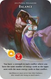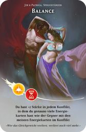 Du hast +2 Stärke in jedem Konflikt, in dem du genauso viele Energiekarten hast wie der Gegner mit den meisten Energiekarten im Konflikt