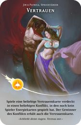 Spiele eine beliebige Vertrauenskarte verdeckt in einen beliebigen Konflikt, in den noch kein Spieler Energiekarten gespielt hat. Der Gewinner des Konflikts erhält auch die Vertrauenskarte.