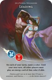 On each of your turns, name a color. Until your next turn, all other players must play an energy card of that color if able.