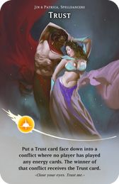 Put a Trust card face down into a conflict where no player has played any energy cards. The winner of that conflict receives the Trust card.