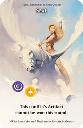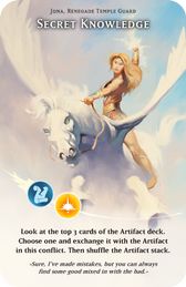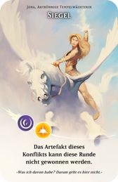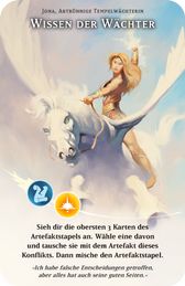 Sieh dir die obersten 3 Karten des Artefaktstapels an. Wähle eine davon und tausche sie mit dem Artefakt dieses Konflikts. Dann mische den Artefaktstapel.